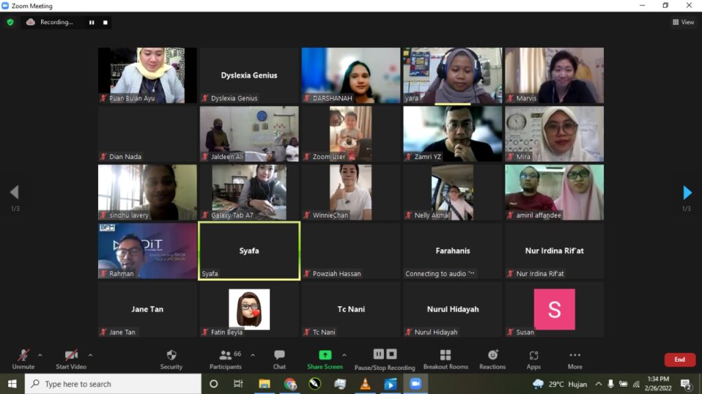 Pada tanggal 26 Februari 2022 Dyslexia Genius telah menyelenggarakan Webinar bagi Bapa Ibu Murid Dyslexia Genius yang bertajuk Bersama Program SPTBiD dan Cara menggunakan Bahan pengajaran SPTBiD di rumah. Webinar di awali dengan kata sambutan dari Puan Sariah Amirin AMW PPN yang merupakan Penasehat Dyslexia Genius, En Jaldeen Ali Pendiri Pusat Dyslexia Genius, Pn Bulan …